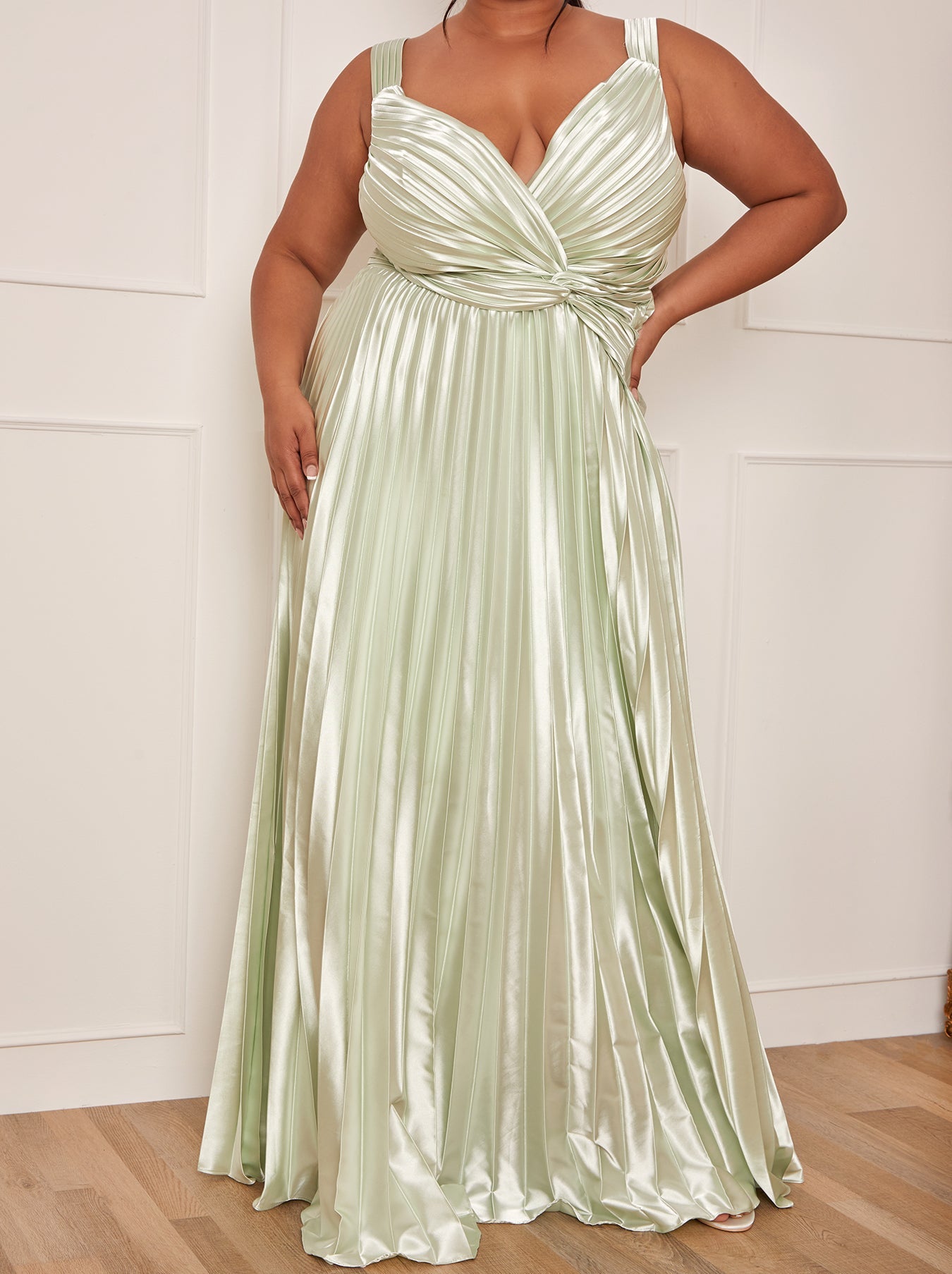 Plus Size Satin Cami Strap Pleated Maxi Dress in Mint