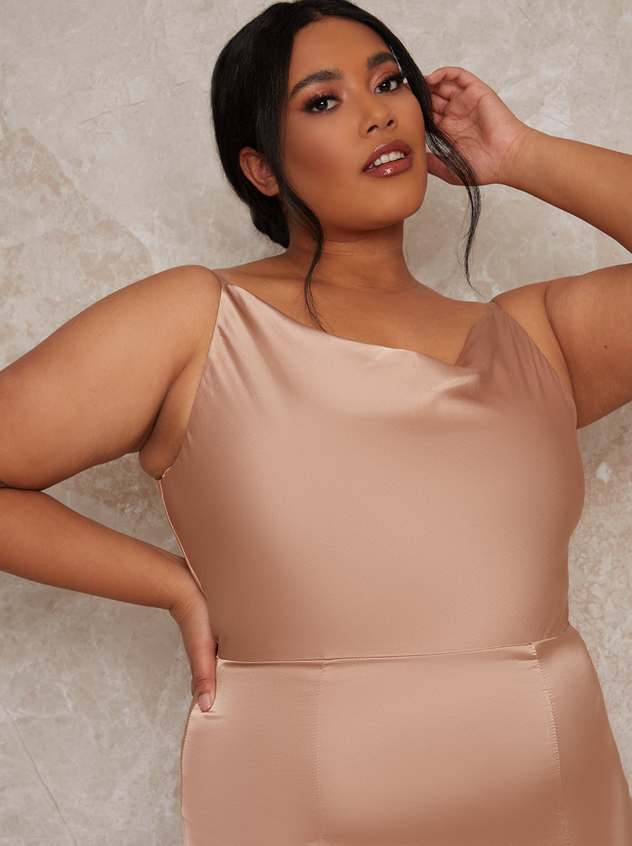 Plus Size Cowl Neck Satin Slip Maxi Dress in Champagne