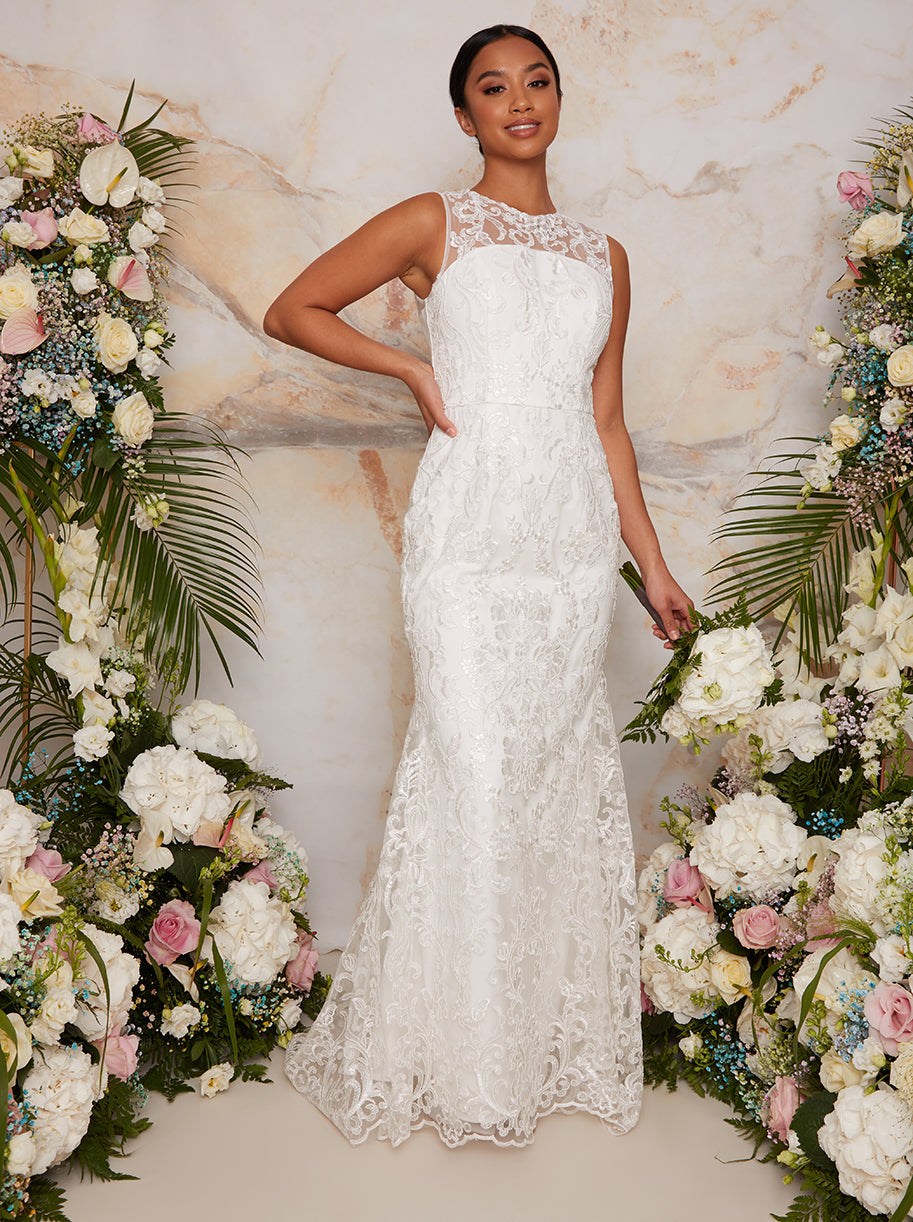 Petite Sleeveless Premium Lace Bridal Wedding Dress in White
