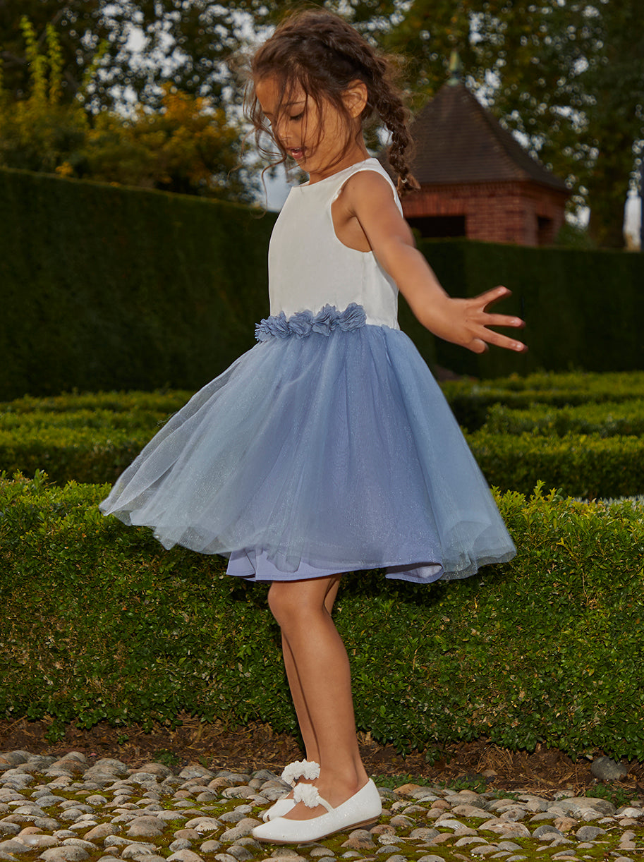 Girls Contrast 3D Floral Tutu Dress in Blue