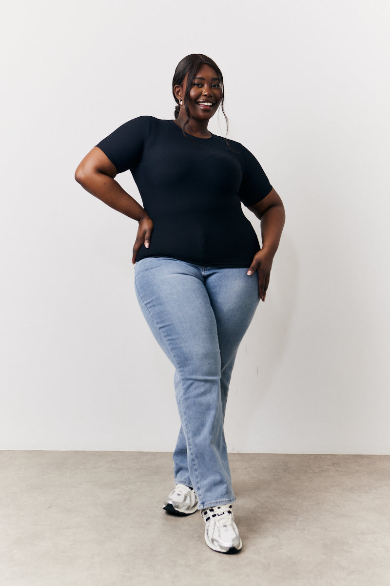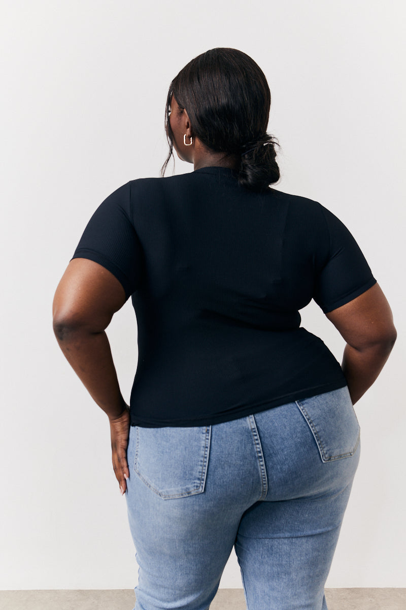 Black Ribbed Crew Neck Short Sleeve Top