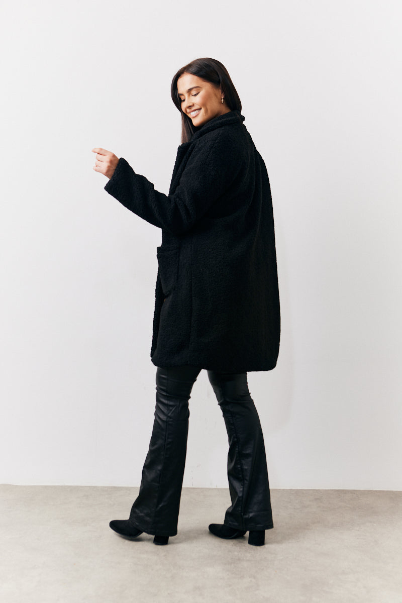 Layer in style with our new black borg jacket. In an easy black, this will work perfectly with everything you wear! Throw on with jeans, a dress or a skirt for a look we are loving.