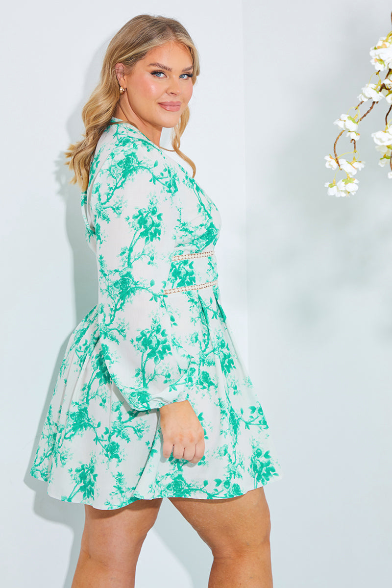 Floral Broderie Trim Mini Skater Dress