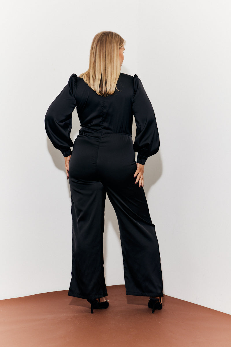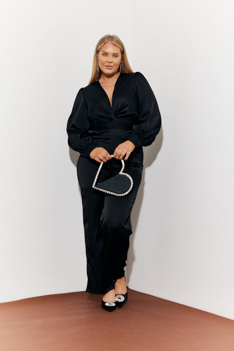 Twist Front Detail Wide Leg Satin Jumpsuit