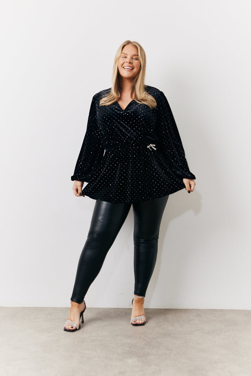 Black Studded Velvet Blouse