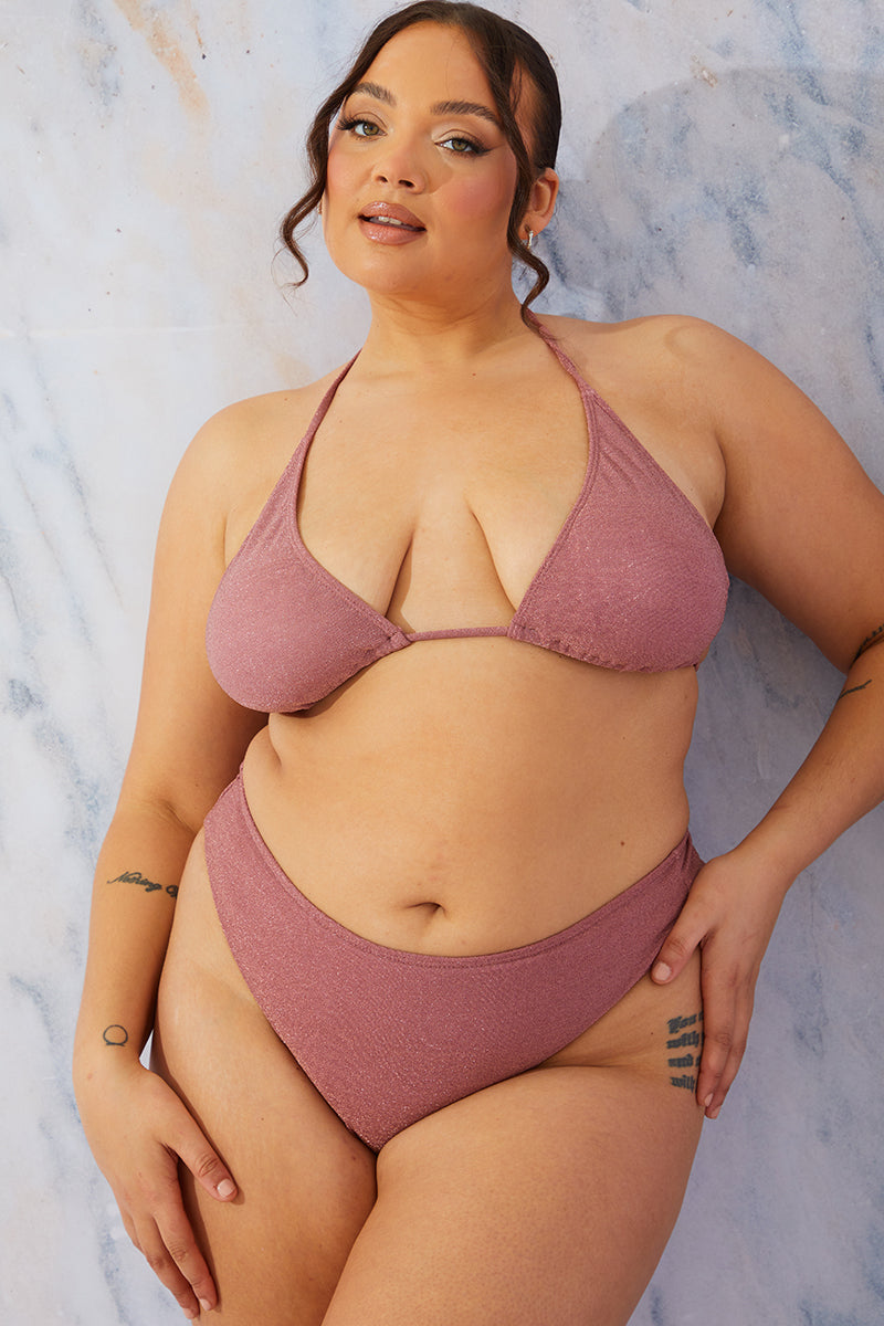 Steal the show this season with these gorgeous bikini bottoms featuring a gorgeous rose gold lurex material and high leg design what more could you ask for? Style with the matching bikini top and sarong for a chic look.