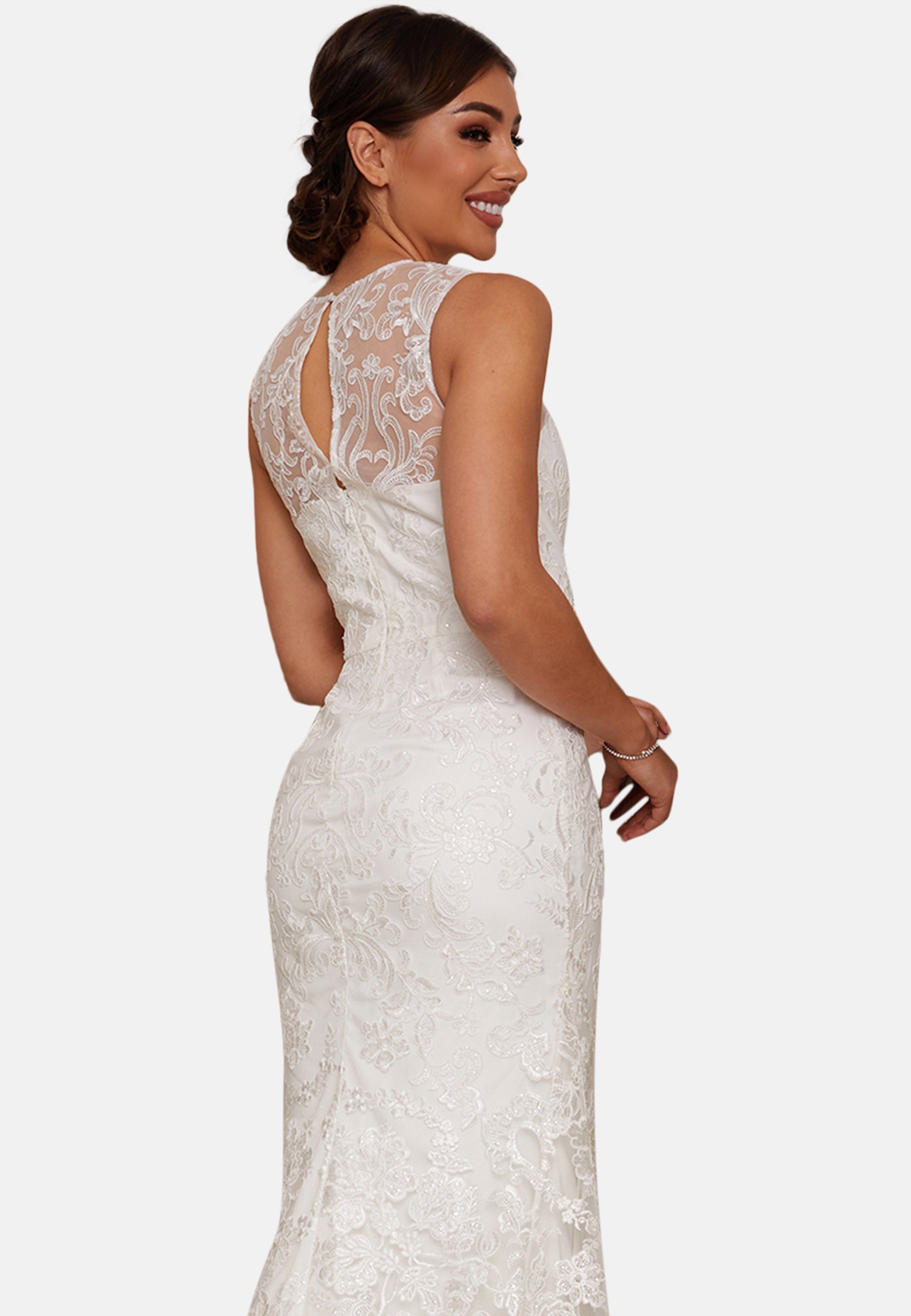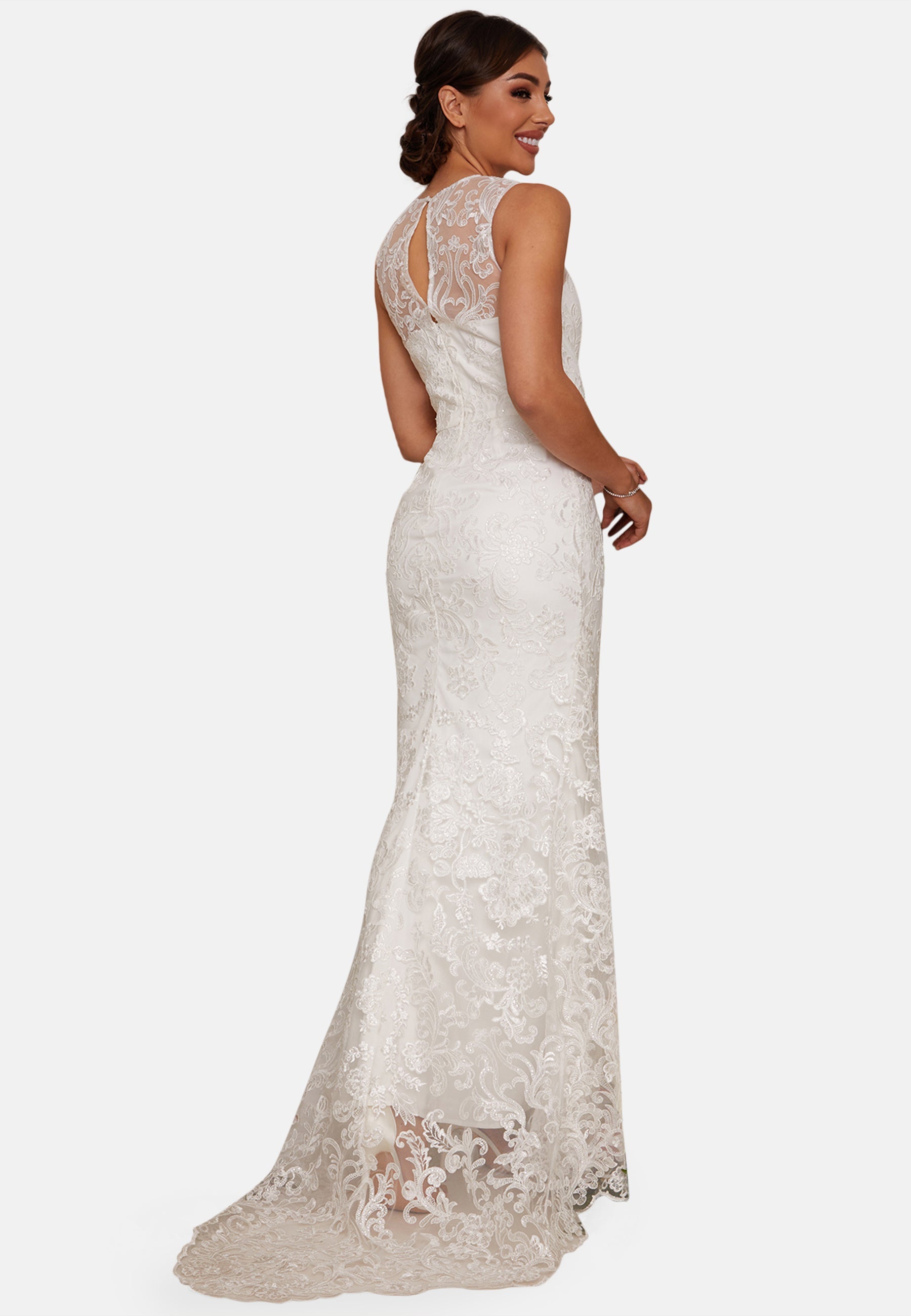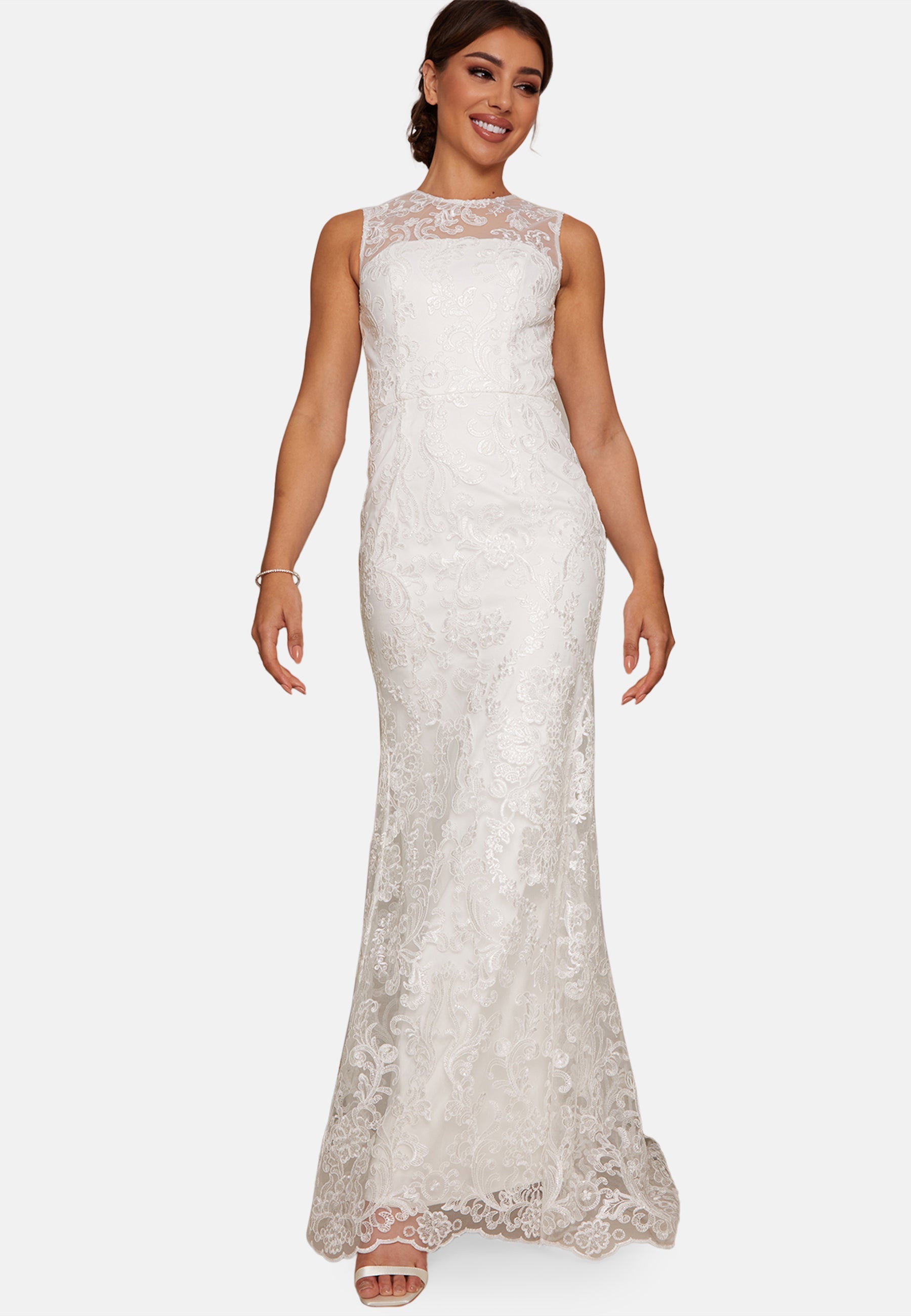 Sleeveless Premium Lace Wedding Dress in White