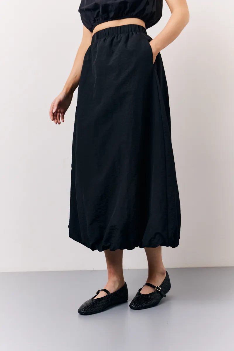 In The Style Balloon Co-Ord Midi Skirt in Black