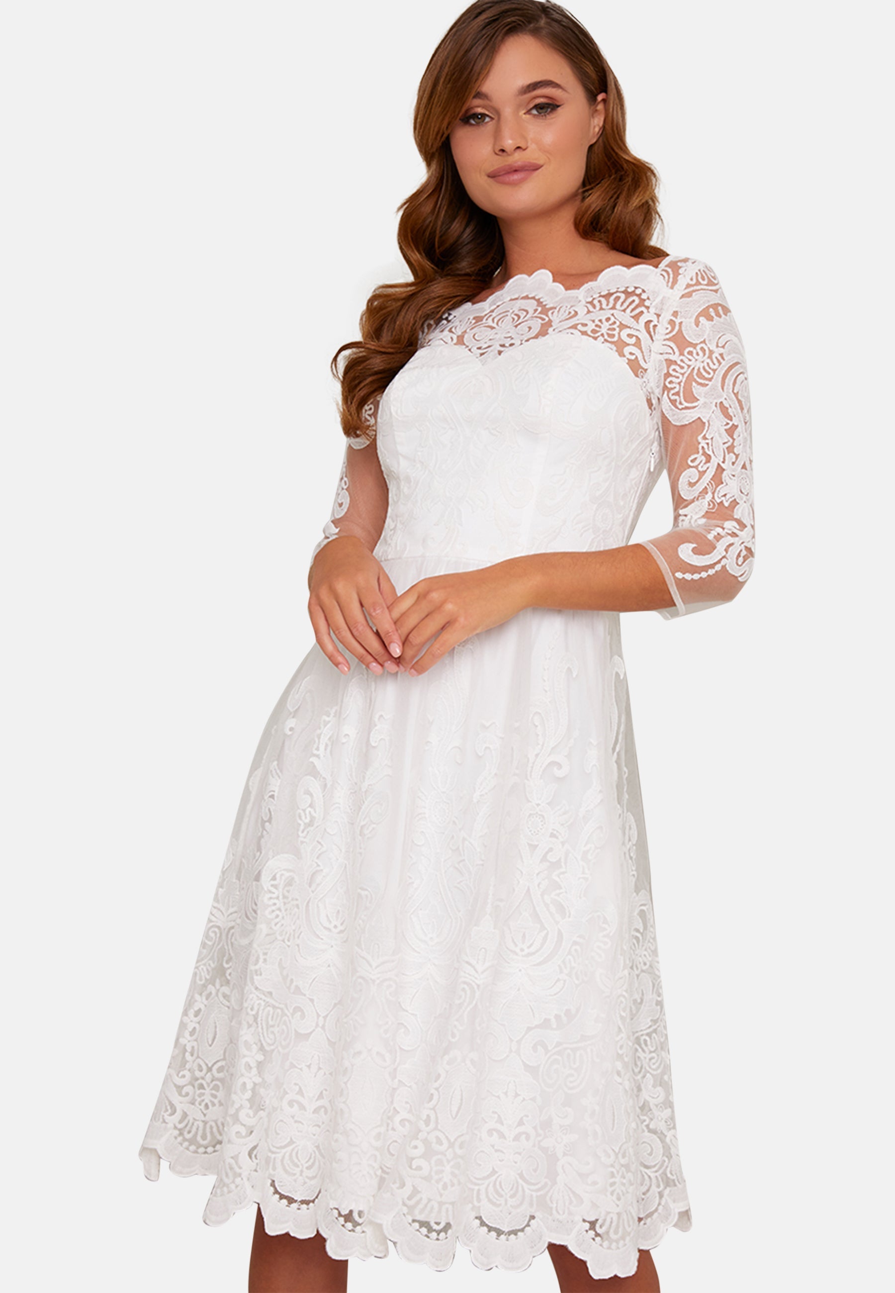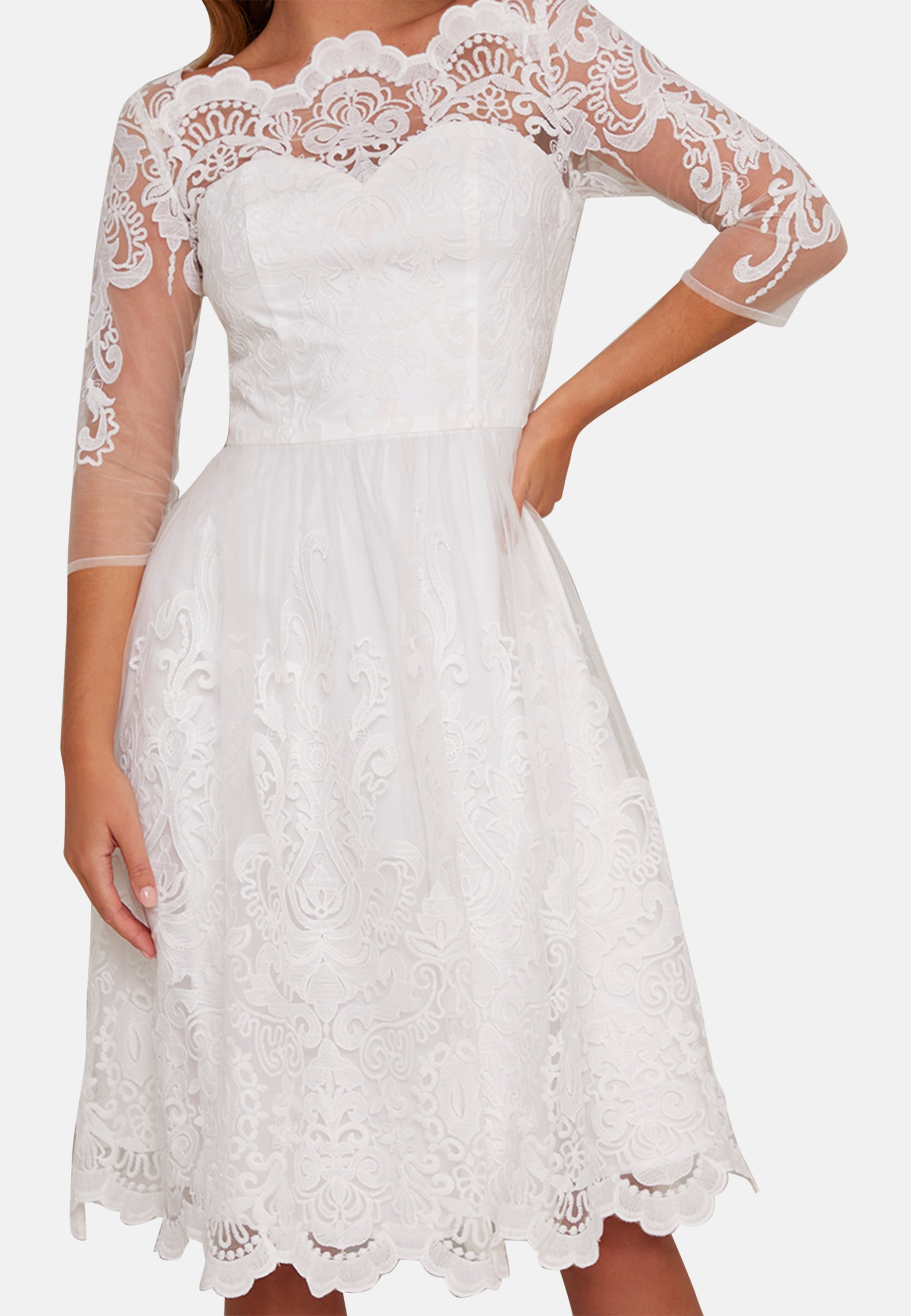 Additional Benefits: I have been designed with special events in mind, in a beautiful skater style, with all-over lace detailing, 3/4 sleeves and sweetheart neckline. I'm fitted at the waist to hug your natural shape and have a floaty knee-length skirt to provide extra elegance.