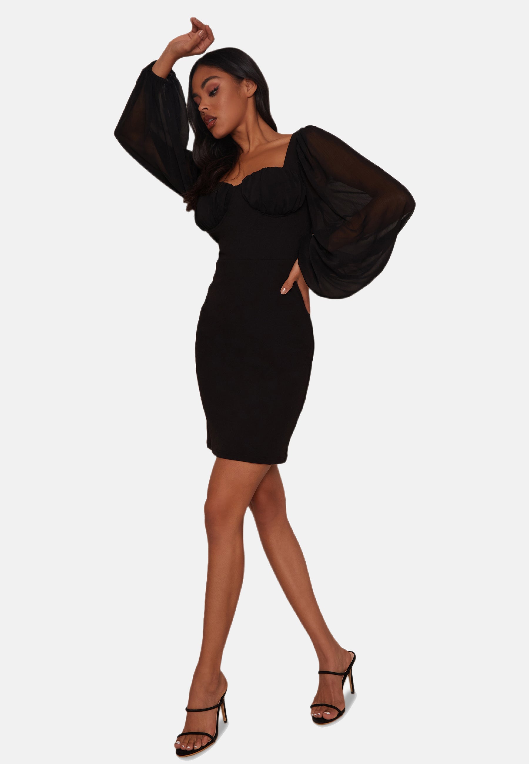 Balloon Sleeve Bodycon Dress in Black