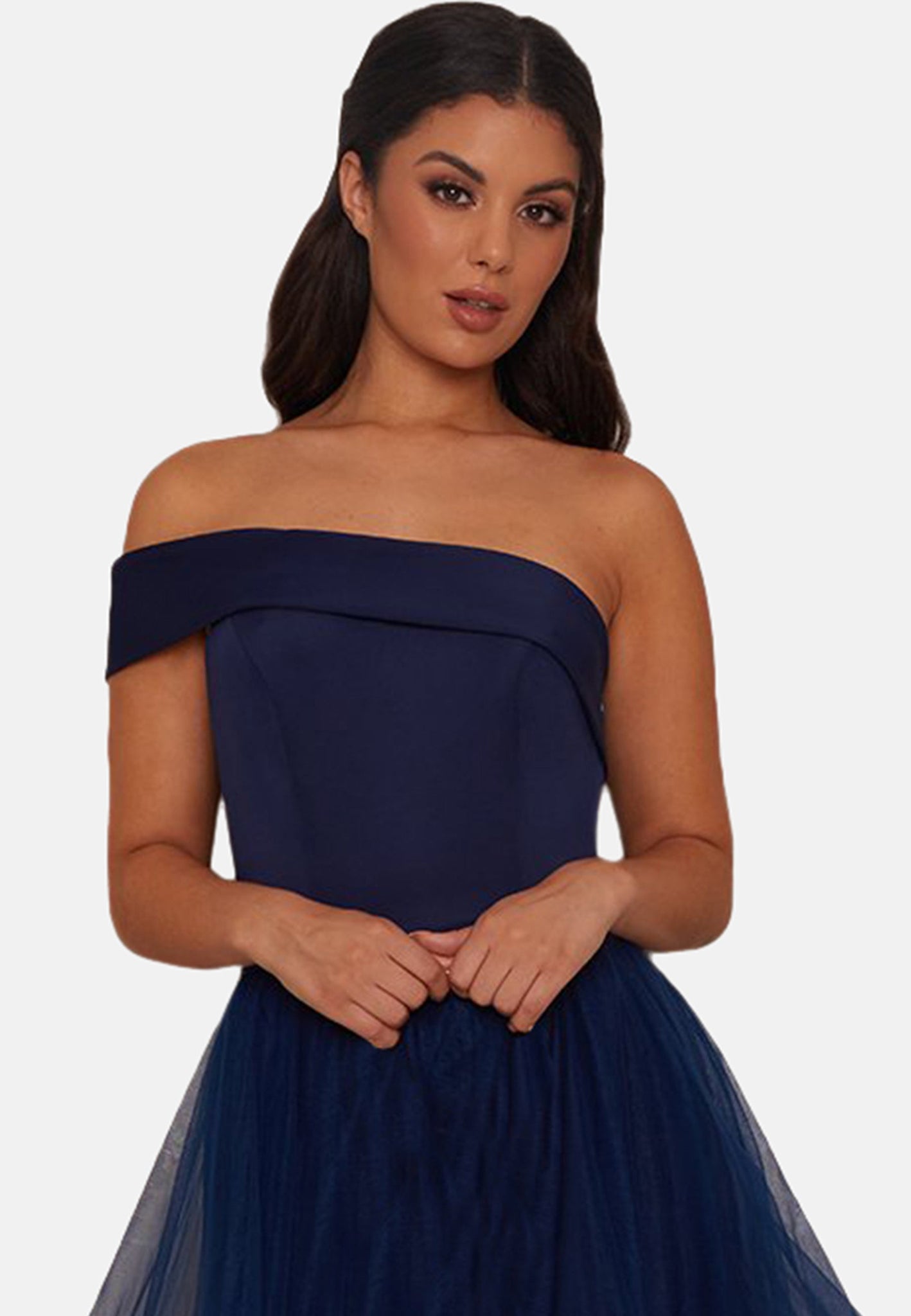 DIP HEM ONE-SHOULDER DRESS WITH TULLE SKIRT