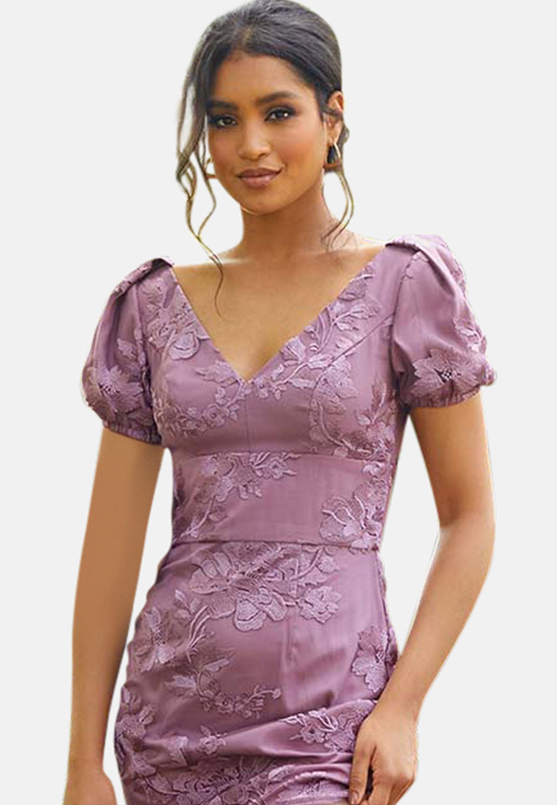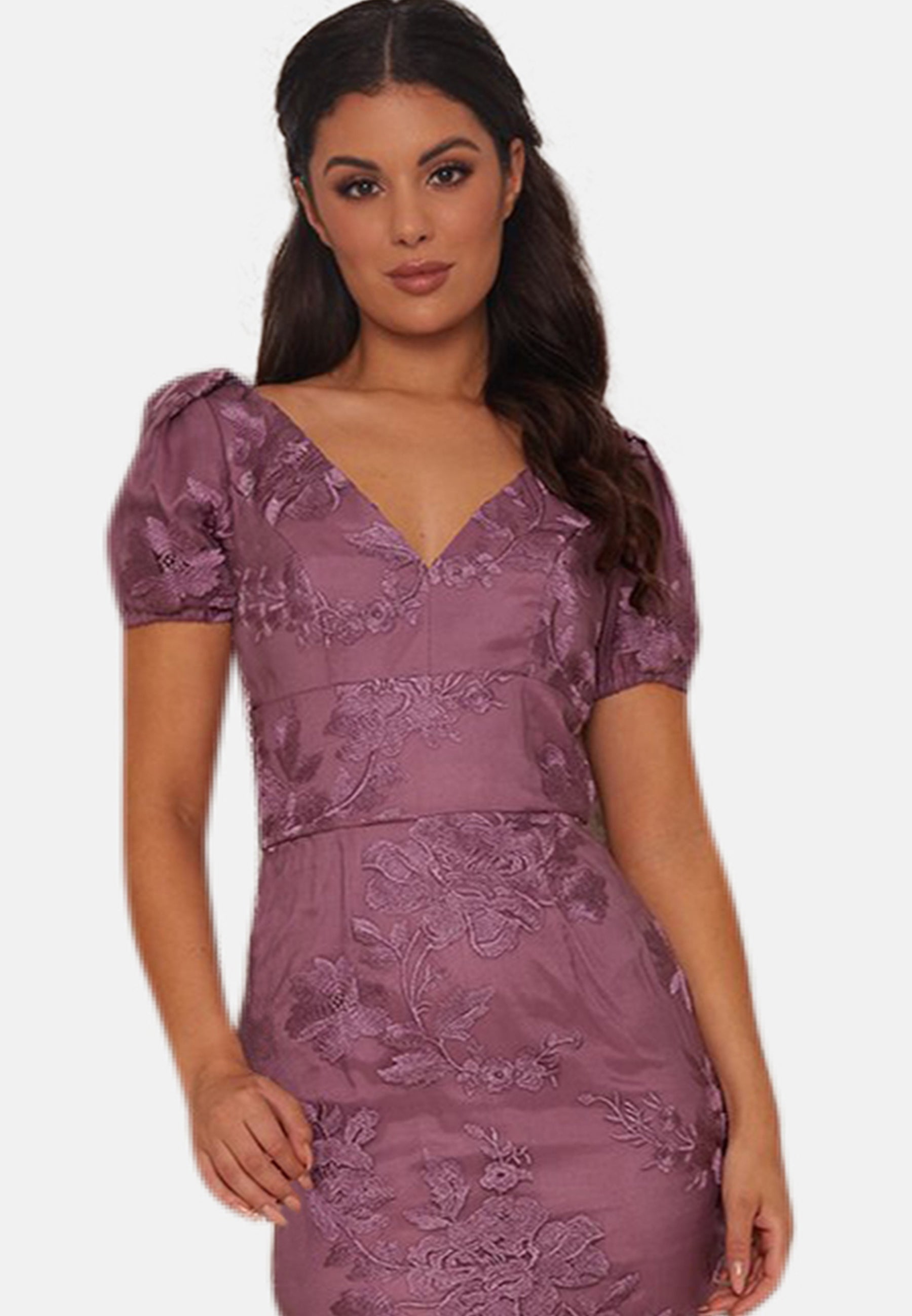 Embroidered Short Sleeve Midi Dress in Purple