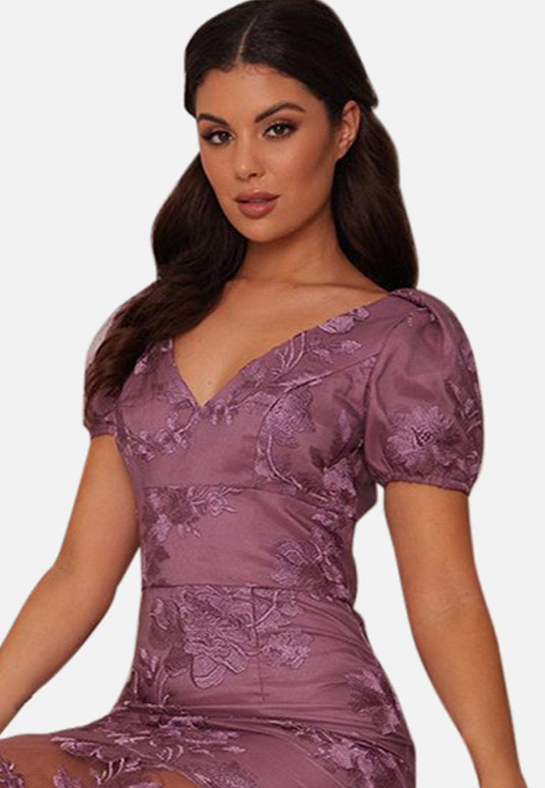 Be ready for any event this season and stay super on-trend and stylish in this stunning peplum hem midi dress, featuring short organza sleeves in a subtle puff style. Pair with strappy heels for classy glam.