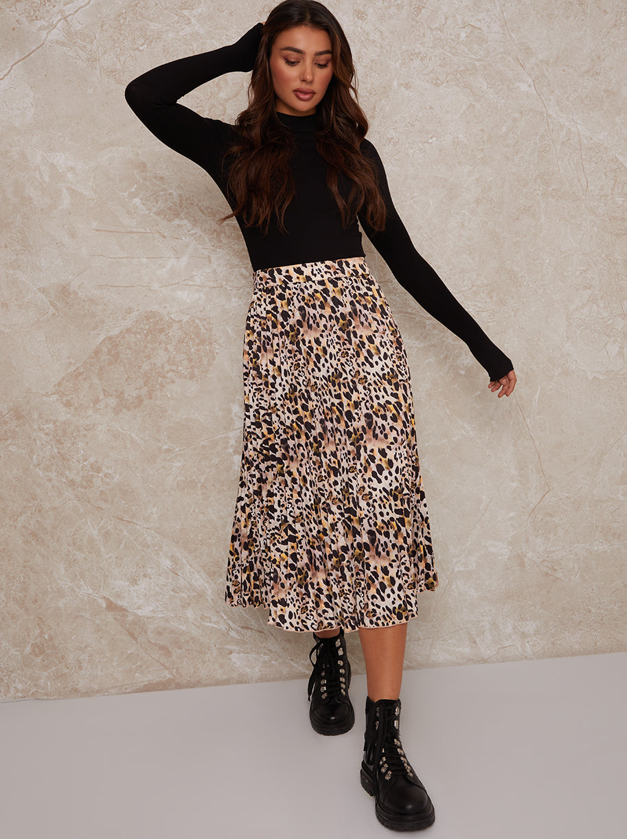 High Waist Animal Print Midi Skirt in Multi