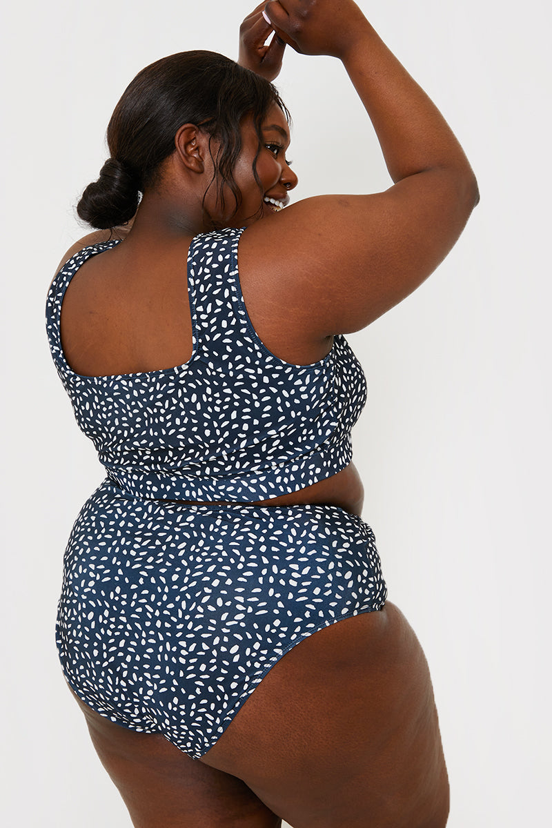 For a poolside ready look, add this bikini to your new holiday wardrobe. In a unique smudge spot print and high waisted design, pair these gorgeous bikini bottoms with the matching top and sunglasses. It's sure to become your new go-to bikini set.