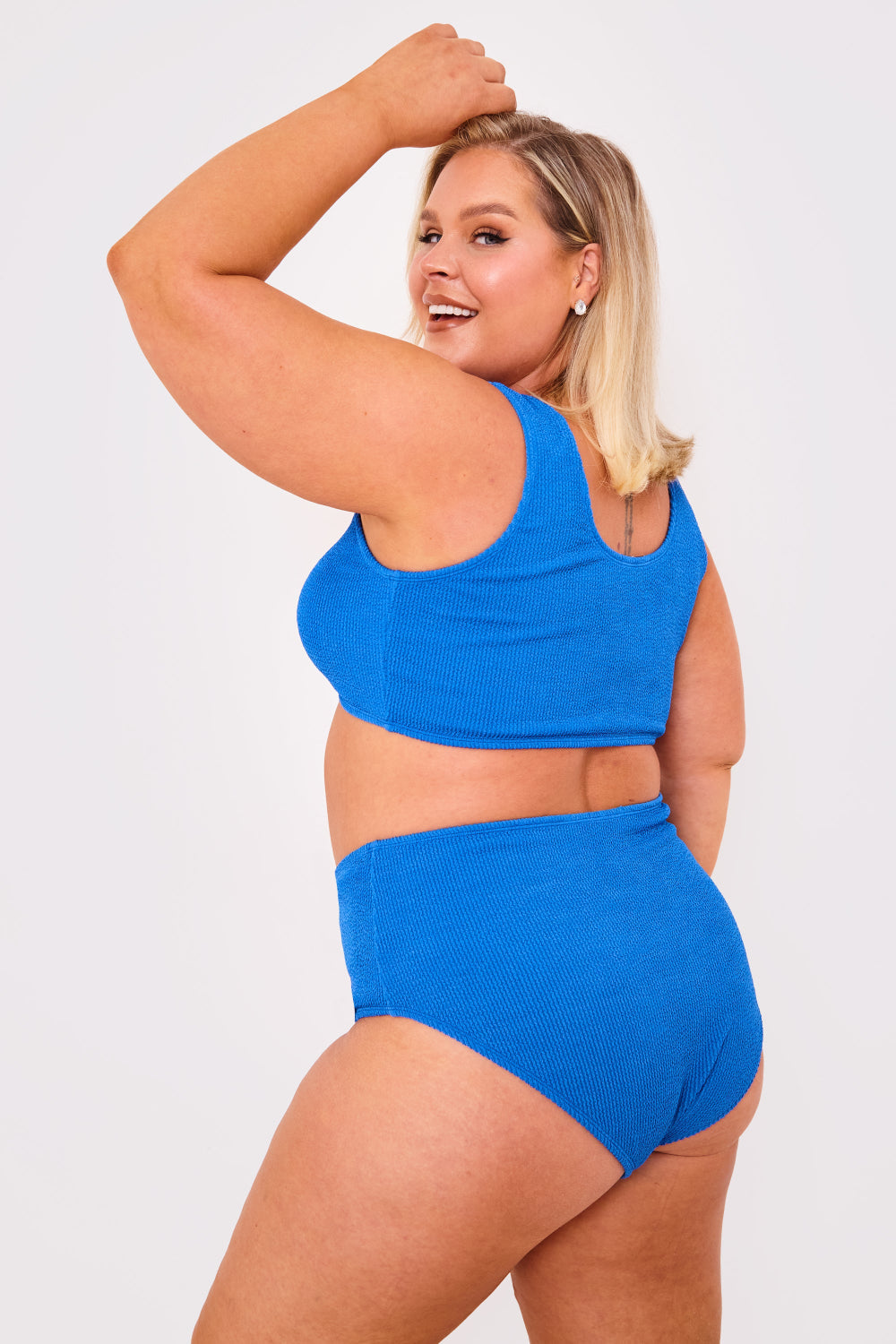 Textured Crinkle Scoop Neck Ring Detail Bikini Top