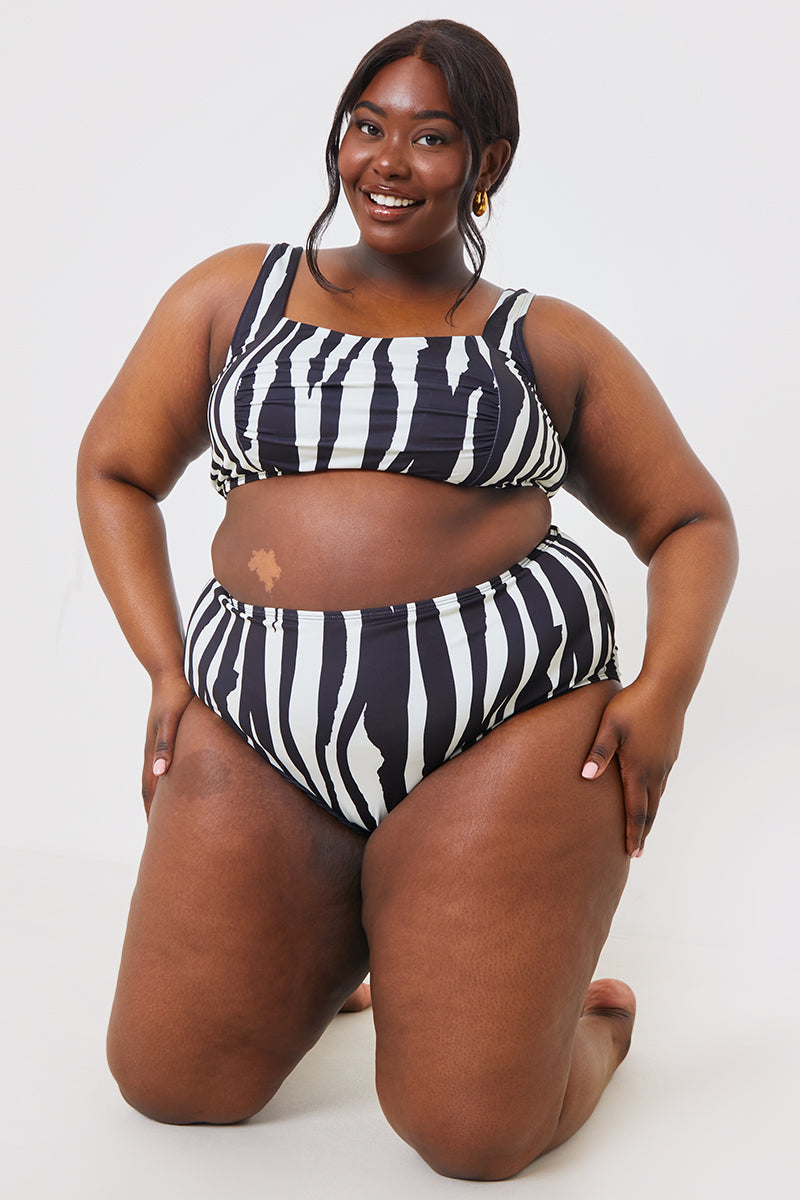 Turn heads this summer with our new Black & white Zebra ruched front square neck bikini top from the latest collection. Pair with the matching bikini bottom for a picture-worthy look.